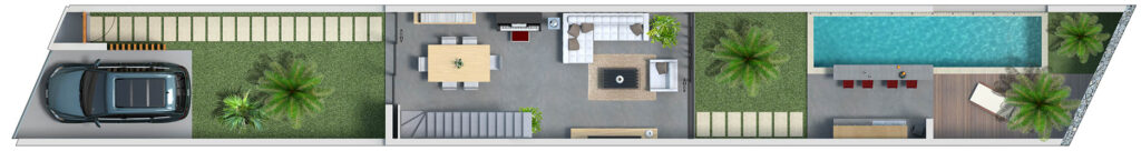 Perspective 3D Réunion par 3D phi | Promotion immobilière | plan de vente d’une maison de ville avec piscine